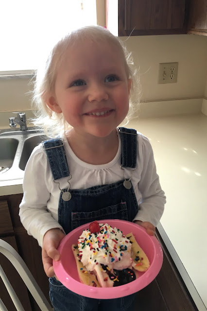 This morning she was able to put the cherry on the top of her puzzle, and after lunch, we had the real deal. She was one happy little camper!