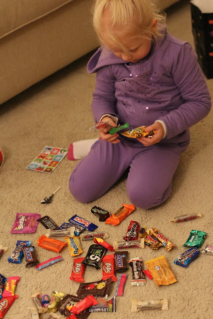 Trick or treating was the highlight, of course. Brinlee was a seasoned expert and literally hit the ground running. McKenna looked confused for the first few houses, but figured it out fast enough. And honestly, I don't think I could ever get tired of watching her hold out her little hand and say "Pwee-poo Teat!" :)